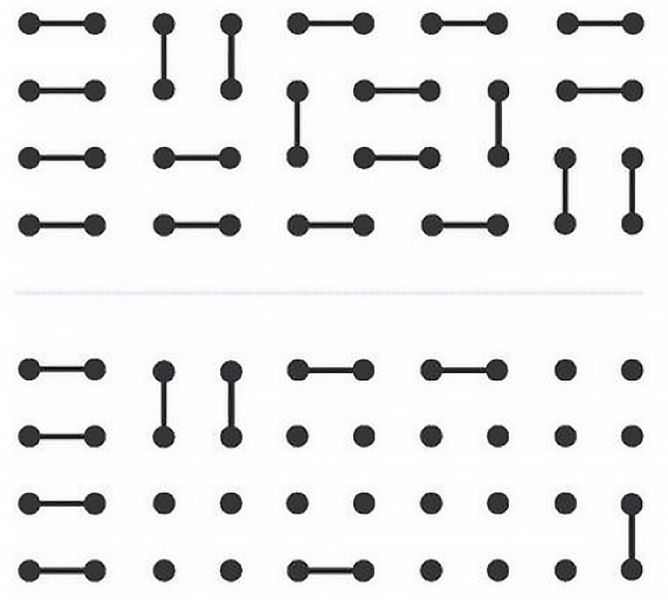 Teraz sa znova pozrite na pôvodné dva obrázky na 20 sekúnd. Zakryte ich a povedzte si, koľko rôznych symbolov je na nich nakreslených.