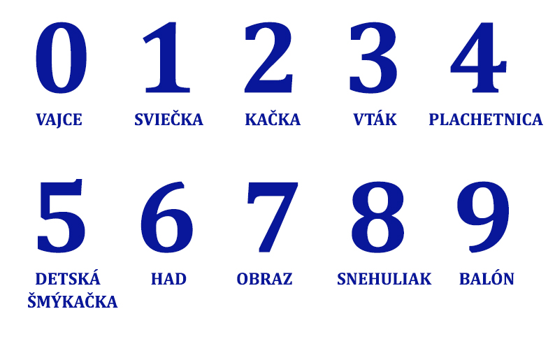 Pozrite sa pozorne na obrázok. Sú na ňom nakreslené čísla. Pod každým číslom je napísané slovo. Pozerajte sa 1 minútu zblízka na obrázok. Potom ho zatvorte a skúste napísať na papier všetky čísla a pod každým číslom aj slovo, ktoré je tam napísané.