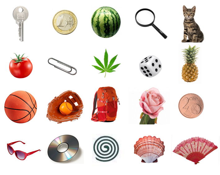 Pozorne sa zadívajte na nasledujúci obrázok 1 minútu. Sú tu nakreslené rôzne predmety. Pozrite sa na nich a zapamätajte si ich. Potom zakryte obrázok a napíšte na papier, čo si pamätáte. Položky musia byť napísané alebo nakreslené rovnako ako sú znázornené na obrázku. To znamená že treba dodržať aj poradie predmetov.