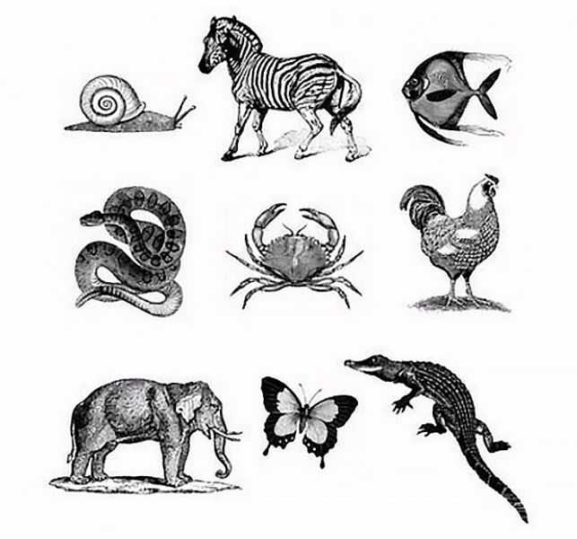 Pozrite sa pozorne na nasledujúci obrázok. Sú na ňom nakreslené zvieratá, cicavce, ryby atď. Pokúste sa zapamätať si všetky obrázky počas 1 minúty.